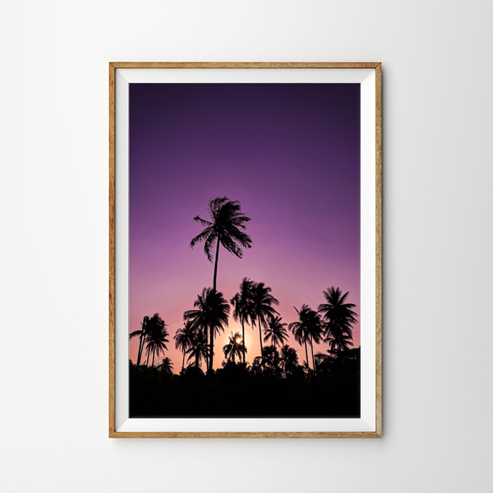サンセット 紫の空とパームツリー ポスター