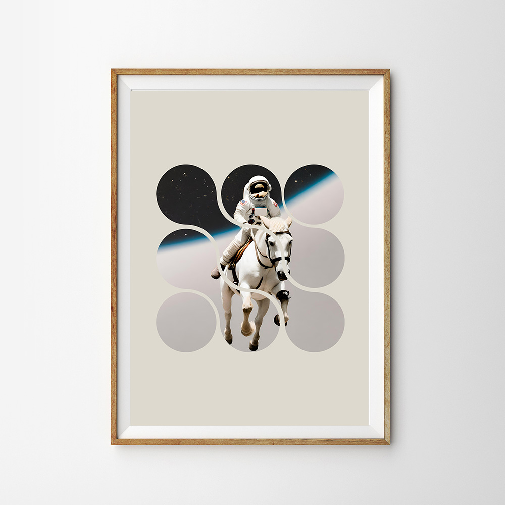 スペースホーン ユニコーンと宇宙飛行士 おしゃれなポスター (B)