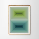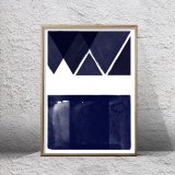 説明文: 濃淡のある青が印象的なスクエア構成のアート。シンプルで洗練されたデザインが、リビングやオフィスに映えます