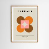 バウハウス フローラルシンメトリーポスター (ベージュトーン × ネイビー )